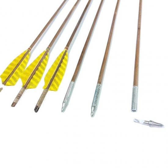 splicing & barrelled bamboo arrows Top configuration Competition Consistent Arrows --High-end flagship version The shaft is made of 5 pieces of splicing bamboo strips with a a shuttle-shaped gradient design,two thin ends and a thick middle. The perfect combination of spliced bamboo arrows and barrelled arrows . Very straight, super durable, perfect consistency and perfect flight . more