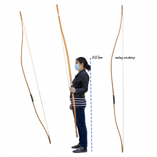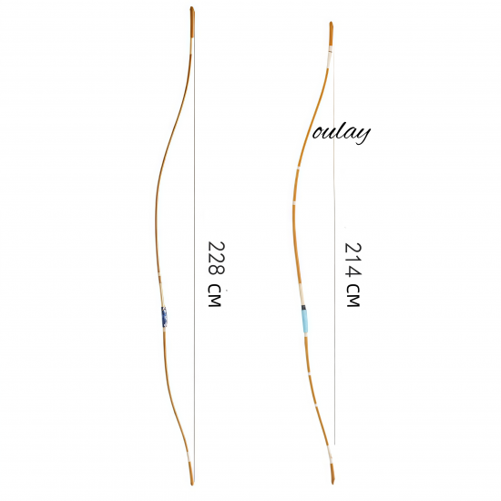 Bamboo Wood Bows Yumi Bow Made by bamboo and natural wood with glue,it's the basic style of Japanese bamboo bows. It has a smooth draw, excellent feel, and relatively fast arrow speed. The draw weight can be selected from 10-20 kgs, and the maximum draw distance is 88-90 cm, making it very suitable for archery practice. more