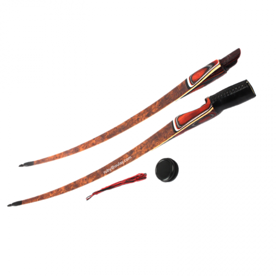 Bamboo Wood Bows Yumi Bow Made by bamboo and natural wood with glue,it's the basic style of Japanese bamboo bows. It has a smooth draw, excellent feel, and relatively fast arrow speed. The draw weight can be selected from 10-20 kgs, and the maximum draw distance is 88-90 cm, making it very suitable for archery practice. more