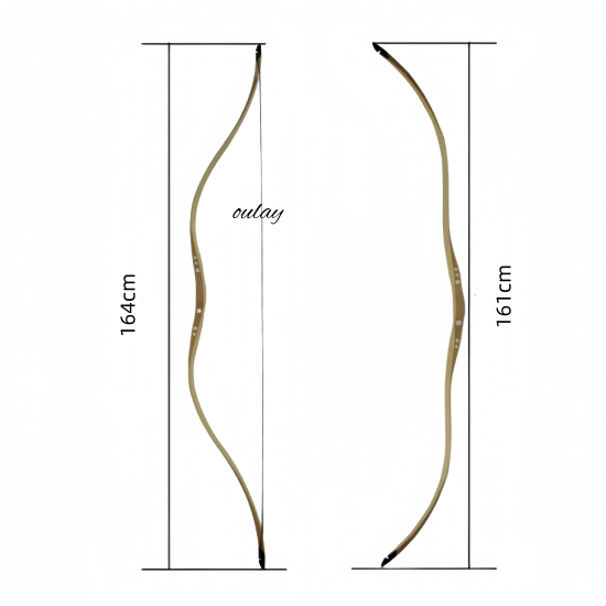 Bamboo Wood Bows Yumi Bow Made by bamboo and natural wood with glue,it's the basic style of Japanese bamboo bows. It has a smooth draw, excellent feel, and relatively fast arrow speed. The draw weight can be selected from 10-20 kgs, and the maximum draw distance is 88-90 cm, making it very suitable for archery practice. more